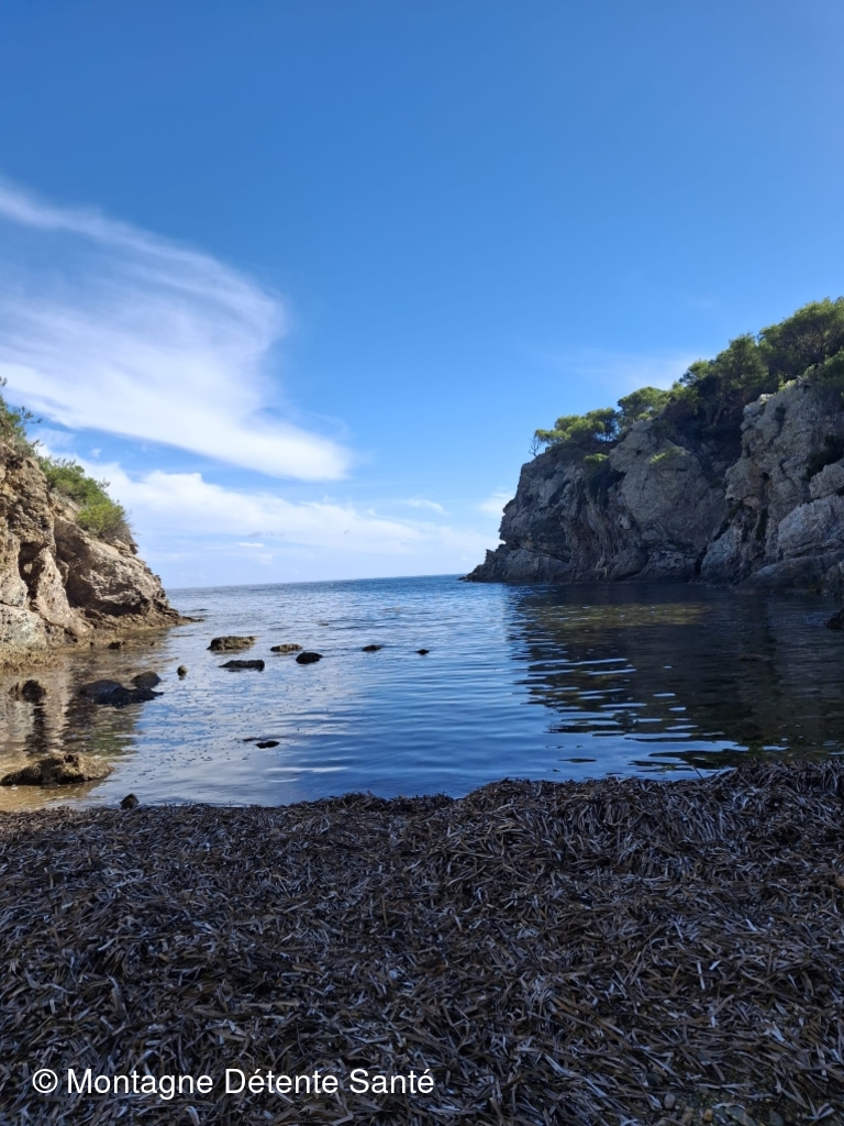 Direction la Pointe de Medès, sur sentier puis sur la plus belle plage d’Europe (selon un classement officiel), la plage Notre Dame. Tout est merveilleusement beau, les pins, les bois, les rochers, les fleurs, les odeurs ….