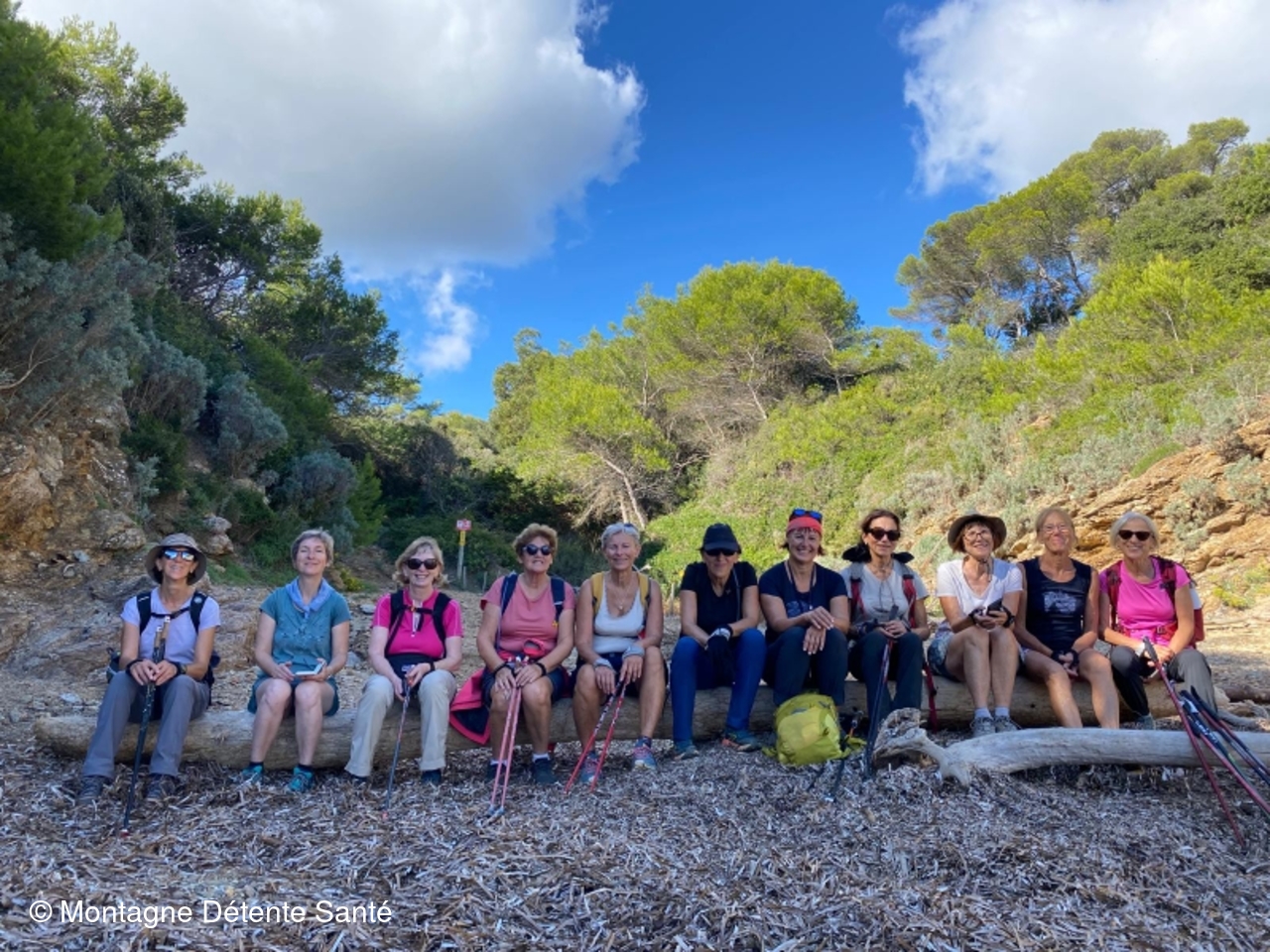 Puis nous continuons vers l’Oustau de Dieu par les terres, au milieu des vignobles plantés à cet endroit suite à un incendie dévastateur au XIX ème siècle, afin de parer un éventuel prochain feu. Ce chemin hors des grands circuits touristiques nous permet de bien nous nourrir de la nature éclatante autour de nous. Les photographes du groupe s’en donnent à cœur joie !