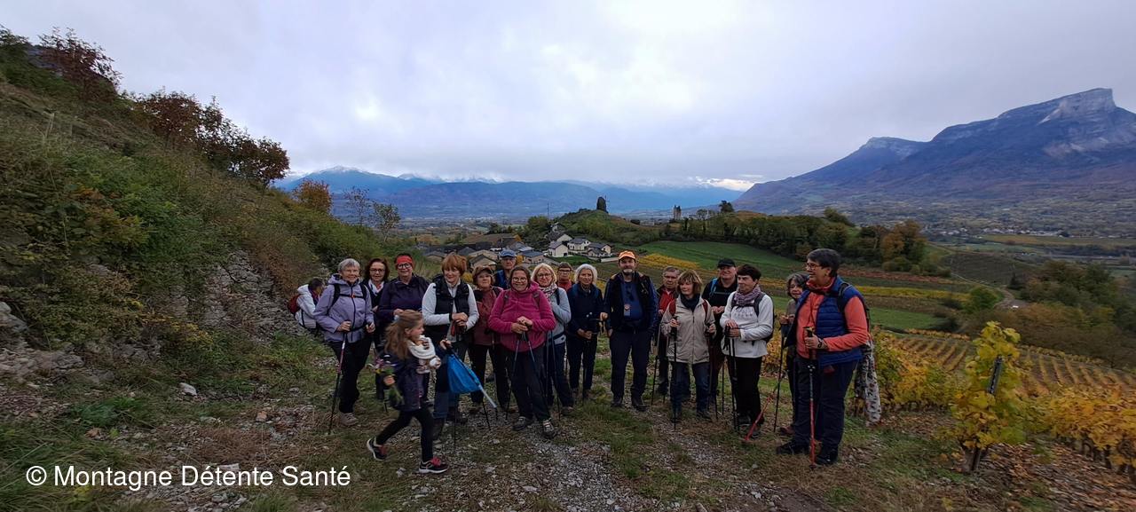 Nous nous retrouvons 22 marcheuses et marcheurs pour rejoindre le parking du Clos Dénarié à Chignin.