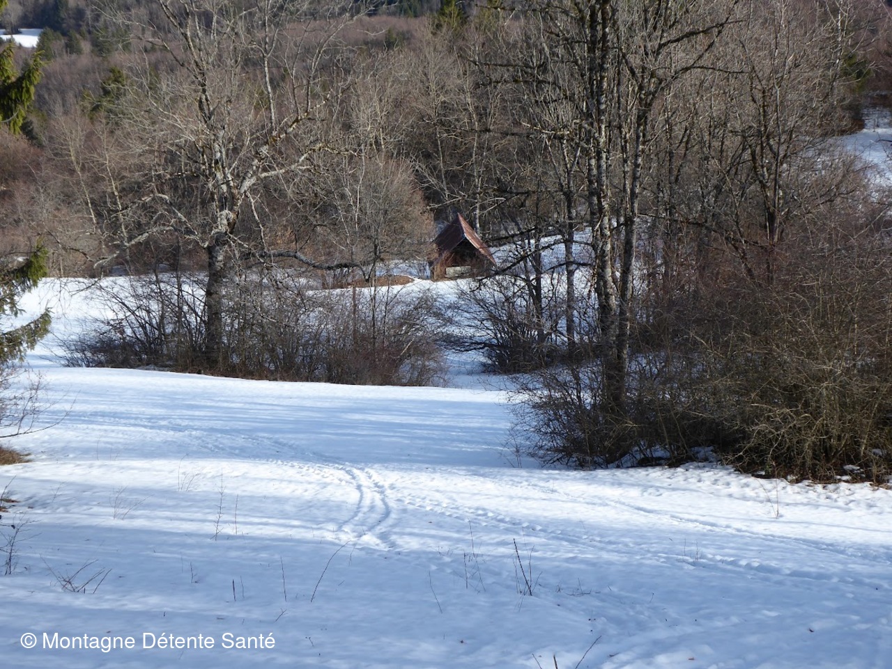 Retour via le même chemin jusqu'au Pré Pignon et nous bifurquons à gauche vers la Cornue, il reste encore pas mal de neige sur ce versant Est mais le sentier est tracé et sans difficultés et coupons via la forêt pour rejoindre les voitures