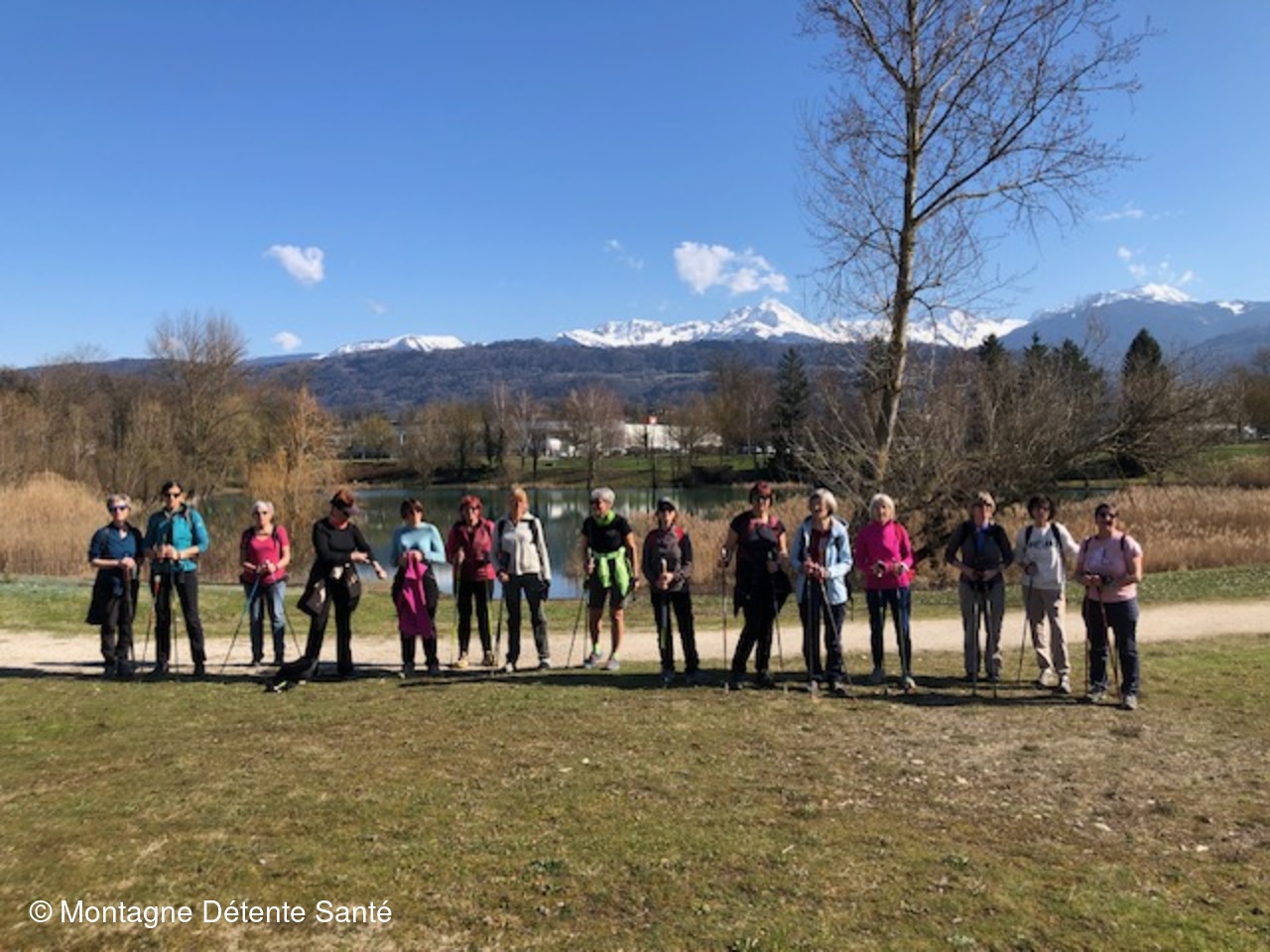 Après la séance traditionnelle d'échauffement, nous voilà parti en remontant la contre-allée des voies Magellan, Isaac Newton, Marco Polo et enfin de la Voie Emilie du Châtelet pour nous amener sur la digue gauche de l'Isère maintenant plus sauvage. Nous l'avalons sur plus de 2,5 km pour atteindre aux confins de la Savoie, le Lac des Lônes de Pontcharra.