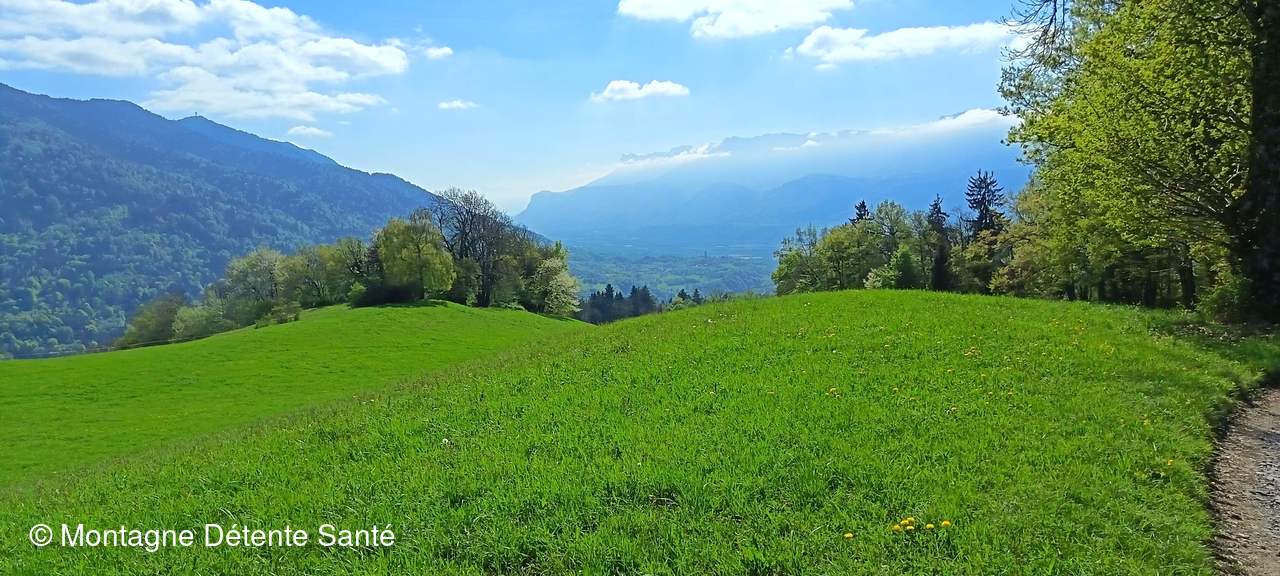 Au-dessus de La Chapelle Blanche nous sommes revenus au village et cette fois-ci la vue s’étendait depuis le mont Granier, L’épine et la dent du Chat, le bassin Chambérien jusqu’à la Savoyarde à notre droite.