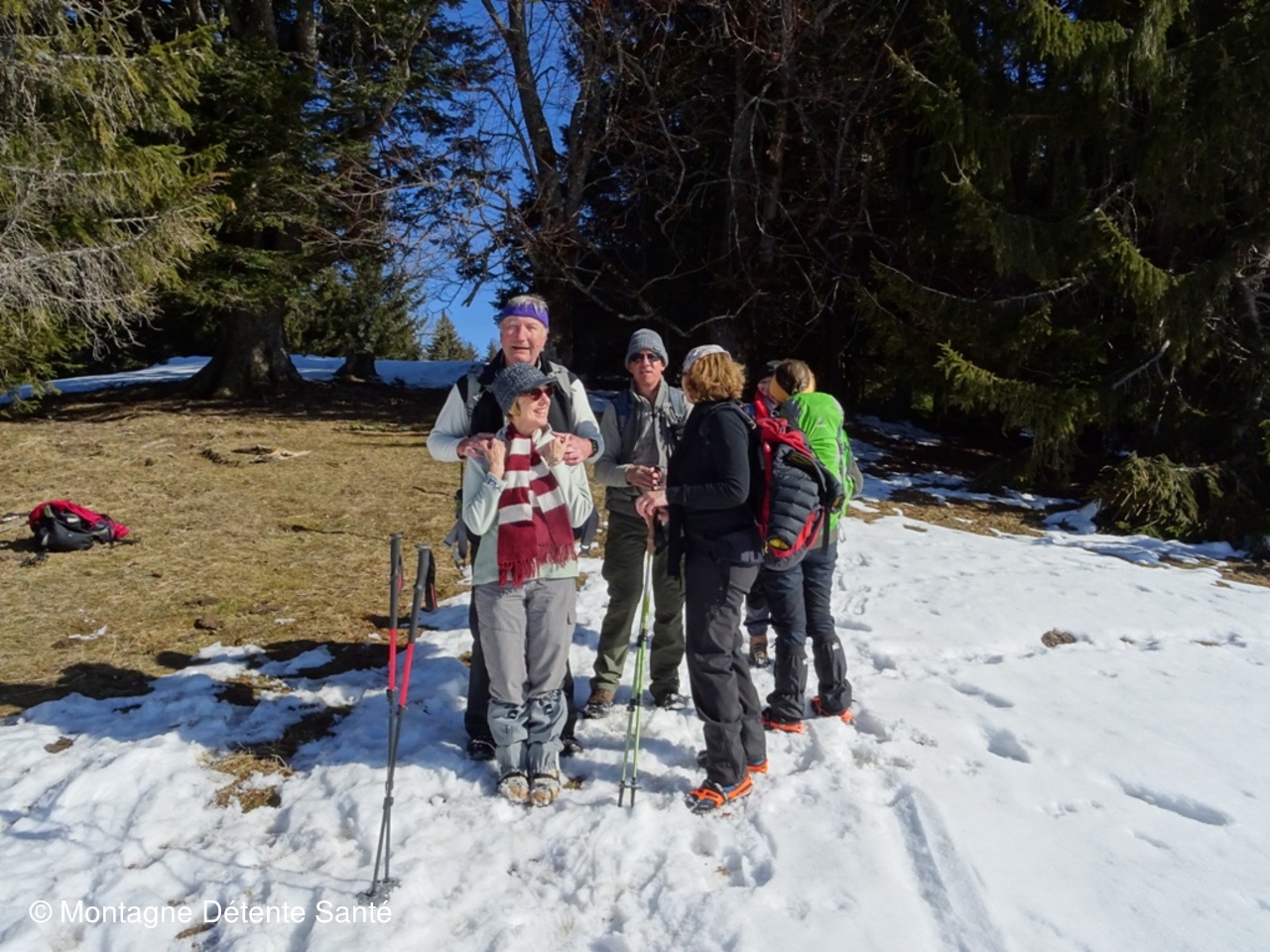 Départ de Mont devant à 9 heures 20, sans raquettes mais avec crampons pour la sécurité, peu de neige mais gelée.