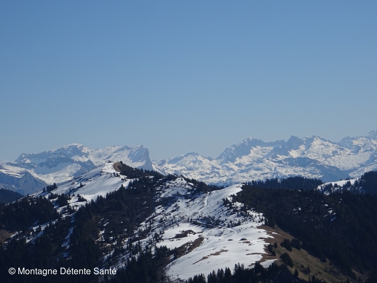 Météo superbe ciel dégagé, magnifique, vu 360° sur les montagnes environnantes, la chaine du Mont-Blanc très proche.