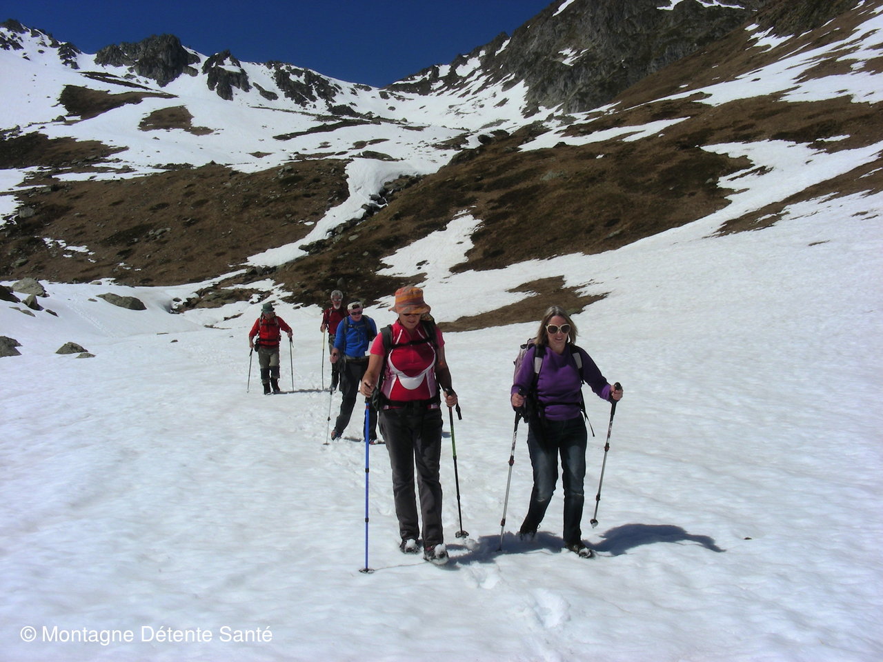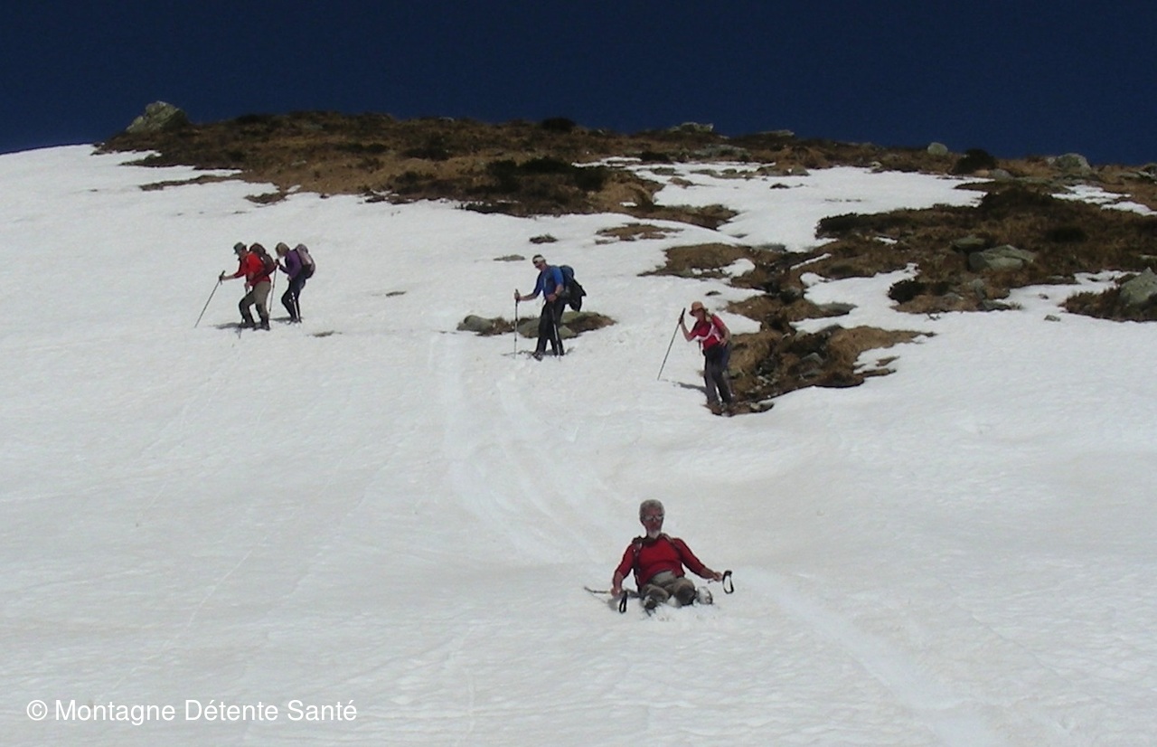 Initiation pour certains à la marche avec crampons.
