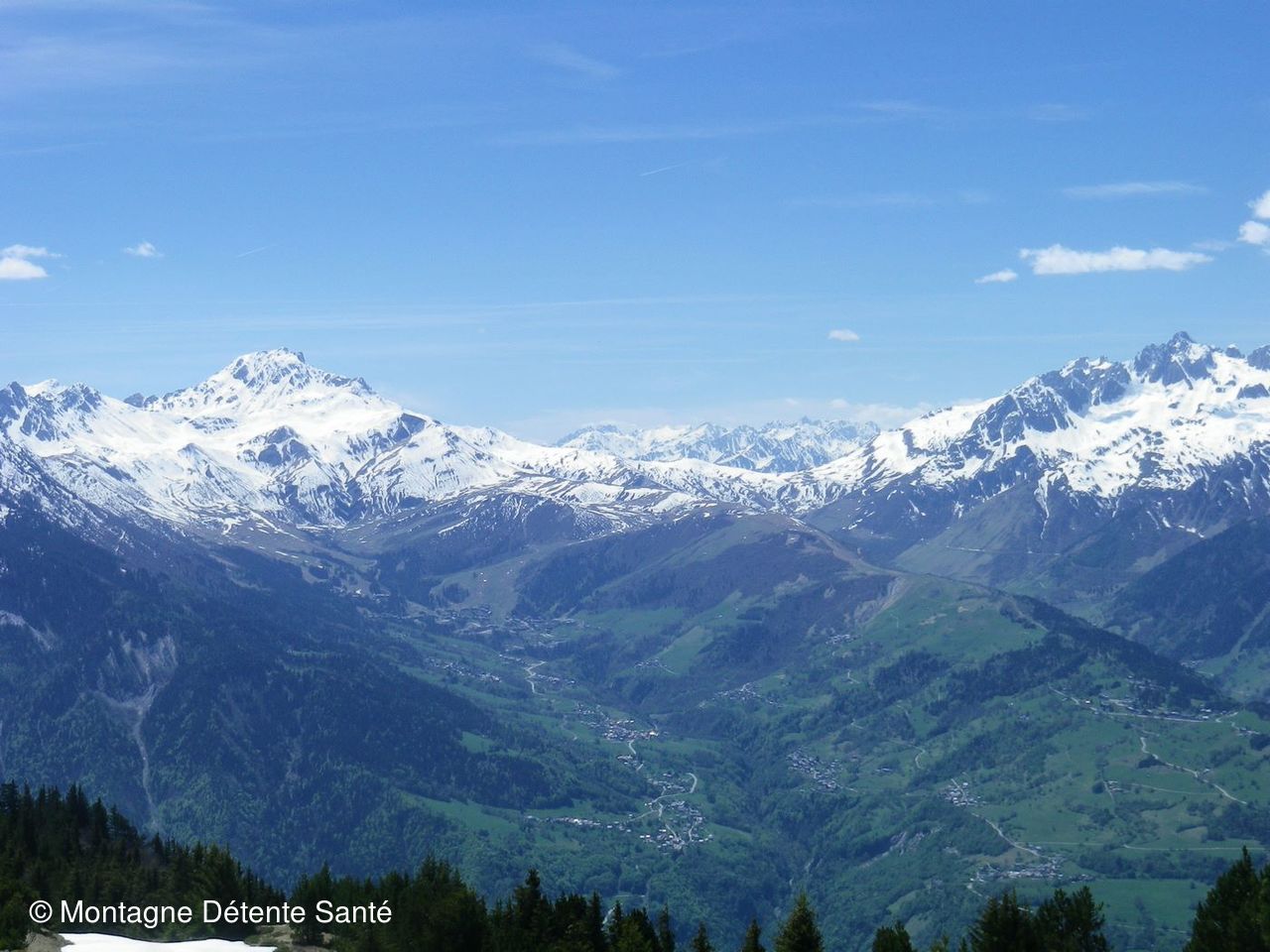 La montagne de la Faverge lieu panoramique du Beaufortain permet d’apercevoir les plus beaux sommets des massifs alpins :Vanoise, Lauziere, Bauges, Ecrins et Meije.